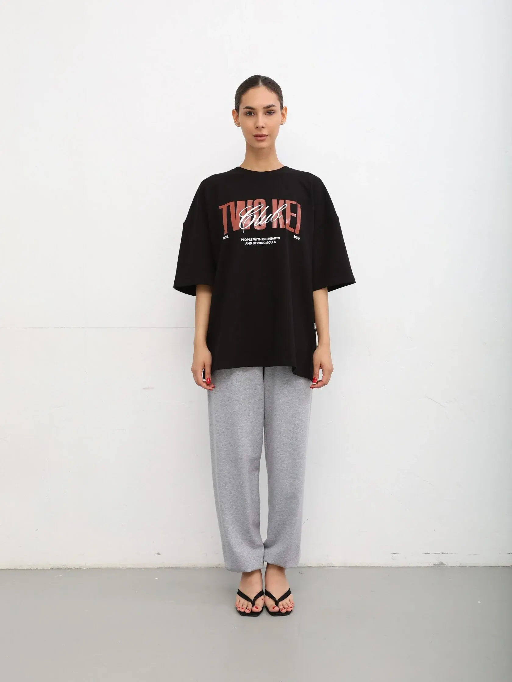 Без сомнения, перед Вами ХИТ нашего бренда: футболка оверсайз сшита из футера 2х нитки, спущенное плечо, отстрочки по плечевому шву и окату рукава, благодаря им швы выглядят всегда аккуратно! Горловина обработана узкой бейкой, за счет чего горловина выглядит красиво даже после многочисленных стирок. Низ рукавов и низ футболки подогнут и обработан двойной строчкой. Принт выполнен в технике шелкографии, что дает гарантии к многочисленным стиркам и носится долго.