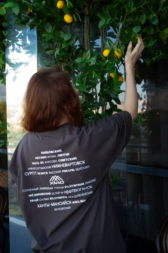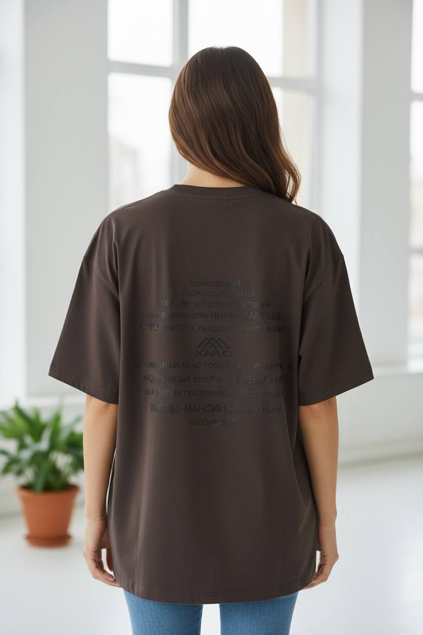 Эта футболка — не просто одежда, а концепт: на груди собраны названия ключевых населённых пунктов Югорского края (Ханты‑Мансийск, Сургут, Нижневартовск, Нефтеюганск, Нягань, Мегион, Когалым, Лангепас, Лянтор, Пыть‑Ях, Урай, Покачи, Радужный, Советский и др.), объединённые в стильную типографическую композицию. Принт выполнен в минималистичном урбан‑стиле — его можно носить как с уличной, так и с повседневной одеждой. Отличный выбор для тех, кто хочет показать свою причастность к Югре или подарить символичный сувенир