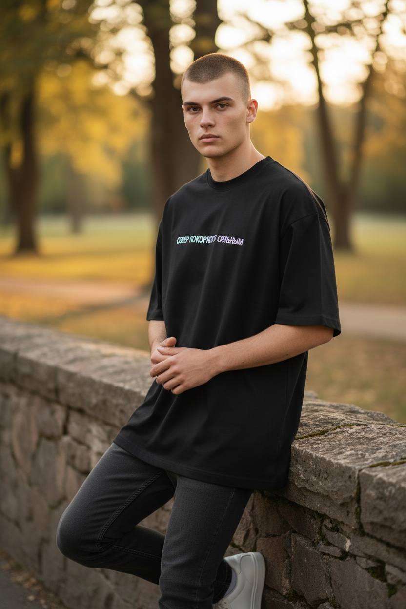Созданная для тех, кто ценит не только комфорт, но и смыслы, эта футболка выполнена из высококачественной кулирной глади. Эта ткань из 100% хлопка славится своей мягкостью, легкостью и исключительной воздухопроницаемостью, обеспечивая идеальное ощущение на теле в течение всего дня. Свободный крой оверсайз дарит абсолютную свободу движений и идеально вписывается в современный расслабленный стиль.