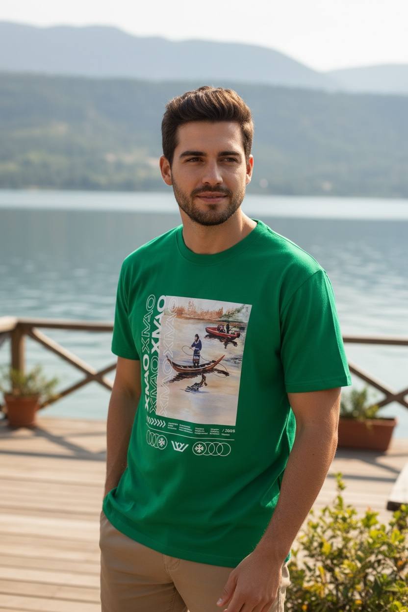 Уникальная футболка с эксклюзивным принтом от художницы Елены Буловой, посвященным Югре и ее рыбацкому наследию.