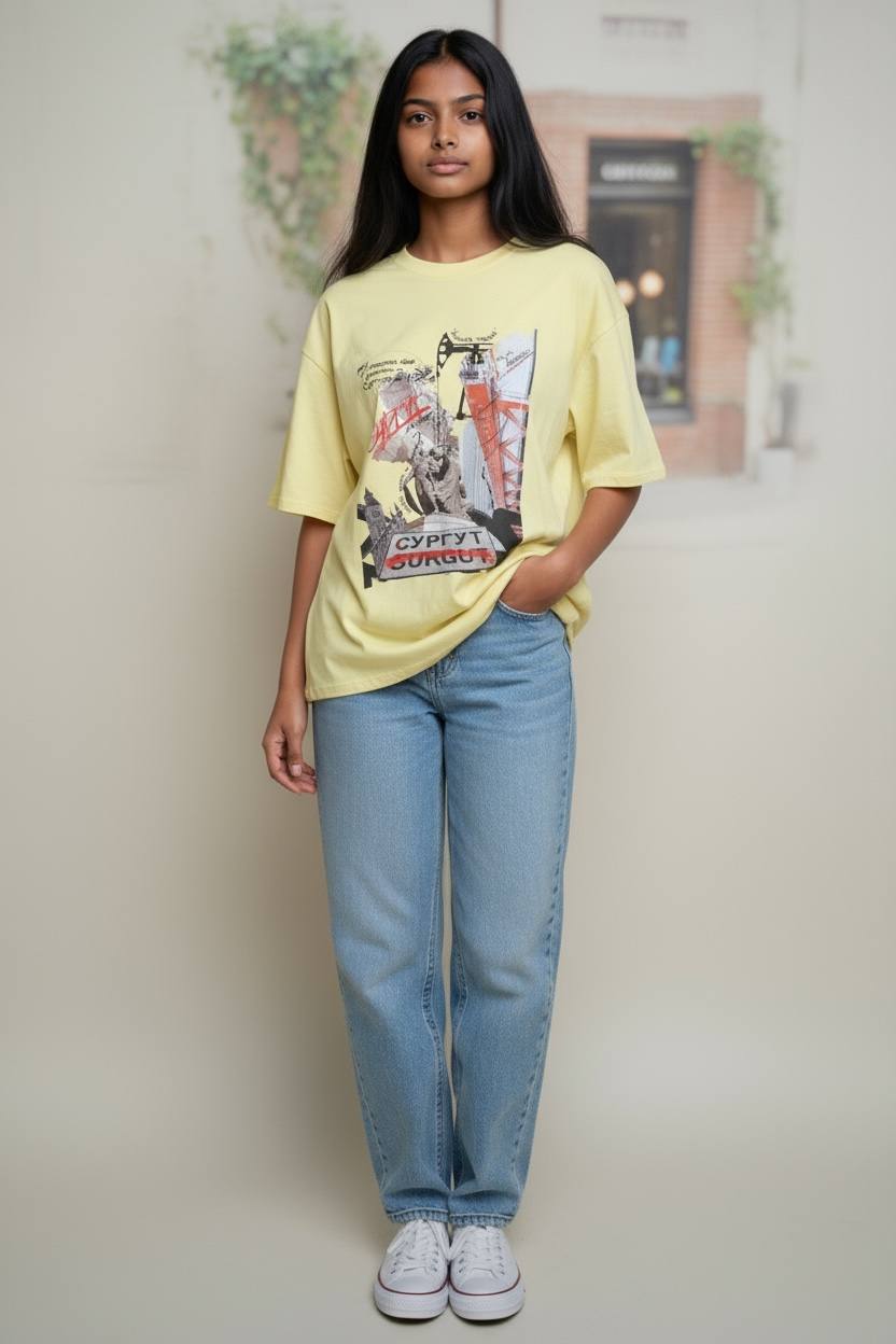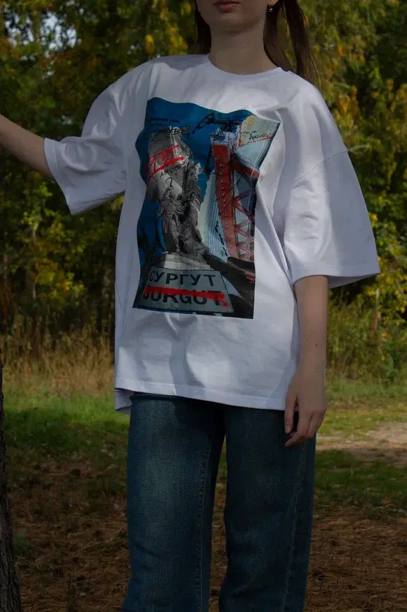 Мягкая хлопковая футболка с уникальным авторским принтом «Сургут»: сочетание городской символики, архитектурных силуэтов и природных мотивов Югры — стильный сувенир и повседневный гардероб в одном.