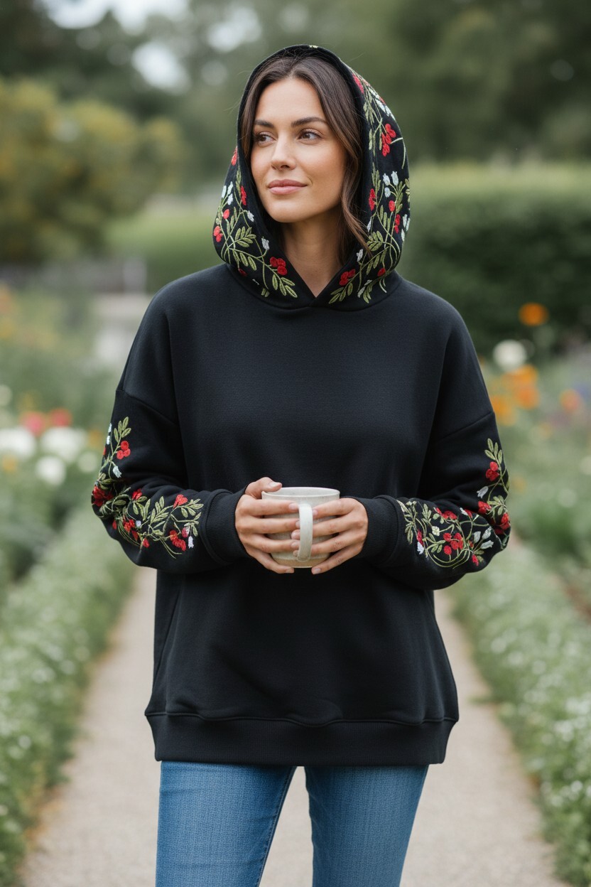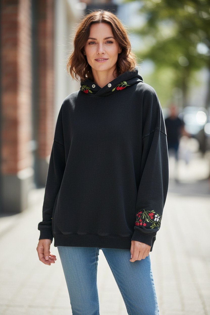 • Изысканная Вышивка: Отличительная черта этой модели – тщательно выполненная вышивка. Детализация на капюшоне и рукавах добавляет худи особого шика и уникальности. Эта вышивка может быть выполнена в виде нежного растительного орнамента, символизирующего бруснику, или минималистичных линий, подчеркивающих элегантность.