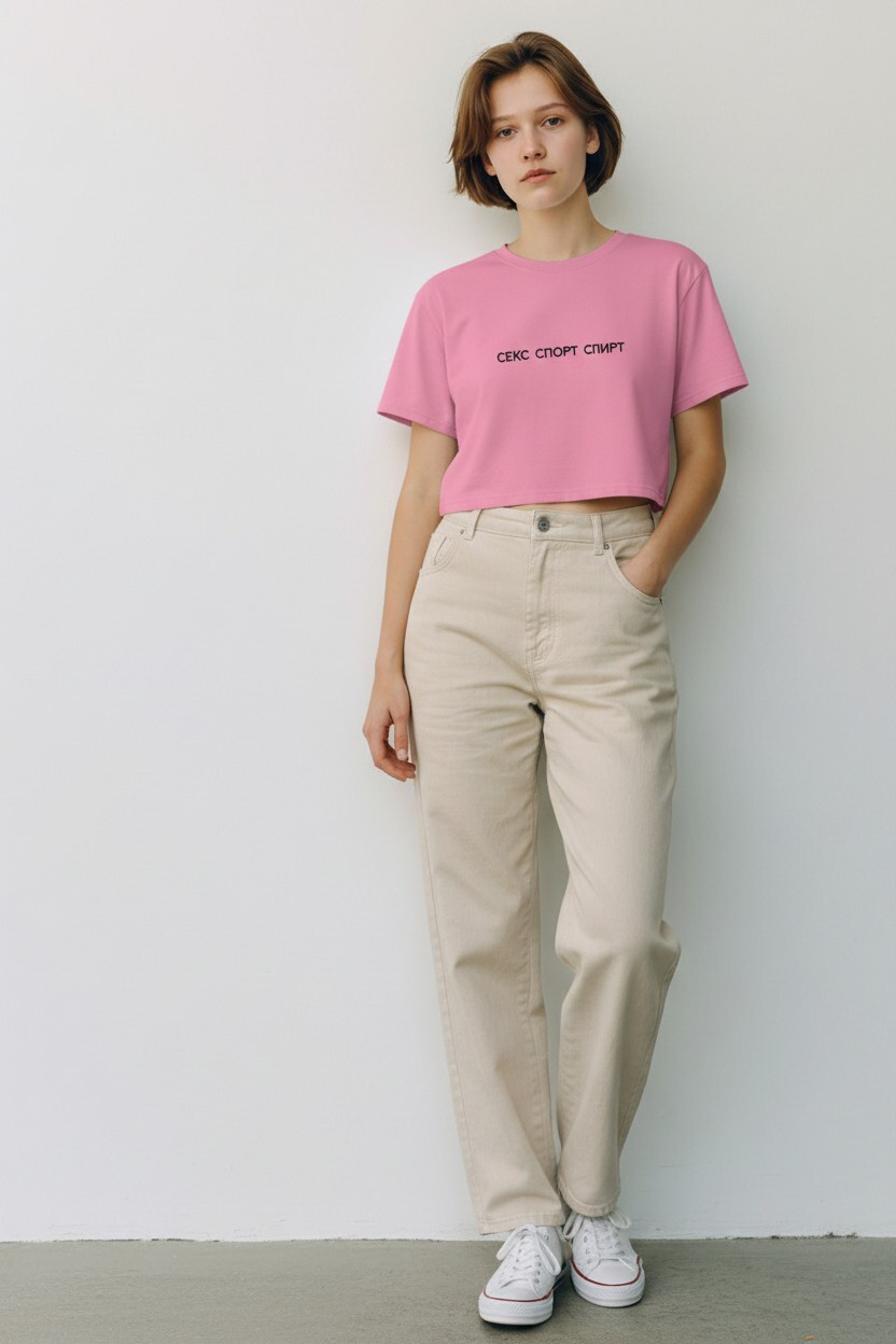 Кроп-Топ «Секс спорт спирт» от «Соколов» — это ироничный, провокационный и абсолютно трендовый способ заявить о себе.