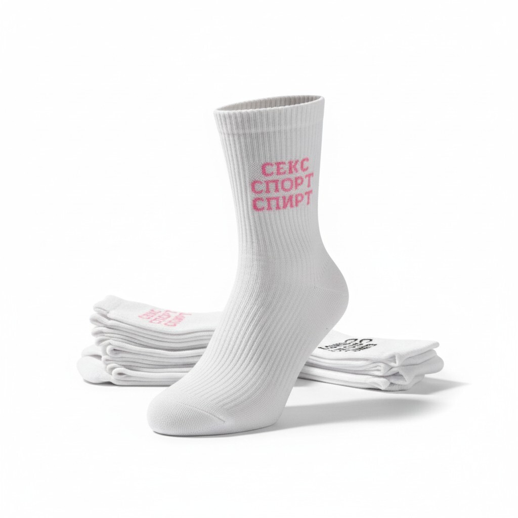 Носки «ССС» (Спорт Секс спирт) — это не просто элемент гардероба, а дерзкий манифест от бренда «Соколов». Они созданы для того, чтобы добавить иронии и стиля в ваш повседневный или спортивный образ.