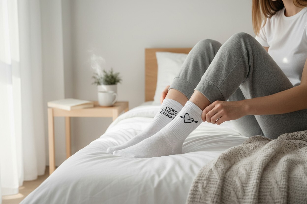 Эти носки идеально подходят для создания акцентного образа в стиле streetwear. Носите их с кроссовками и укороченными брюками, чтобы надпись была видна, или используйте как элемент спортивной экипировки, добавляя юмора в тренировки.