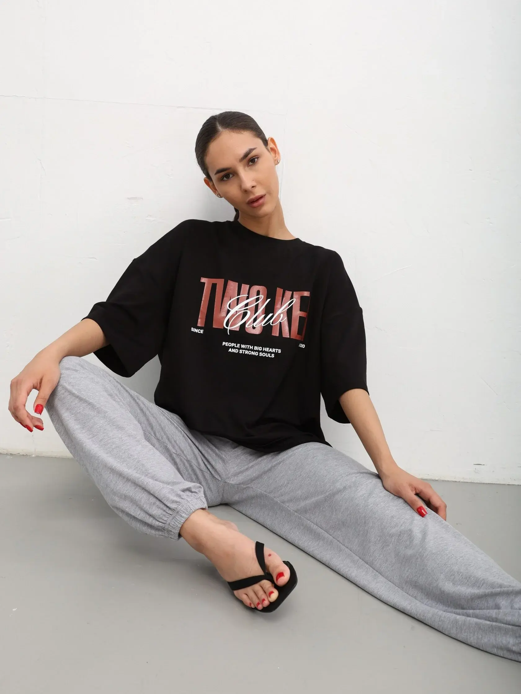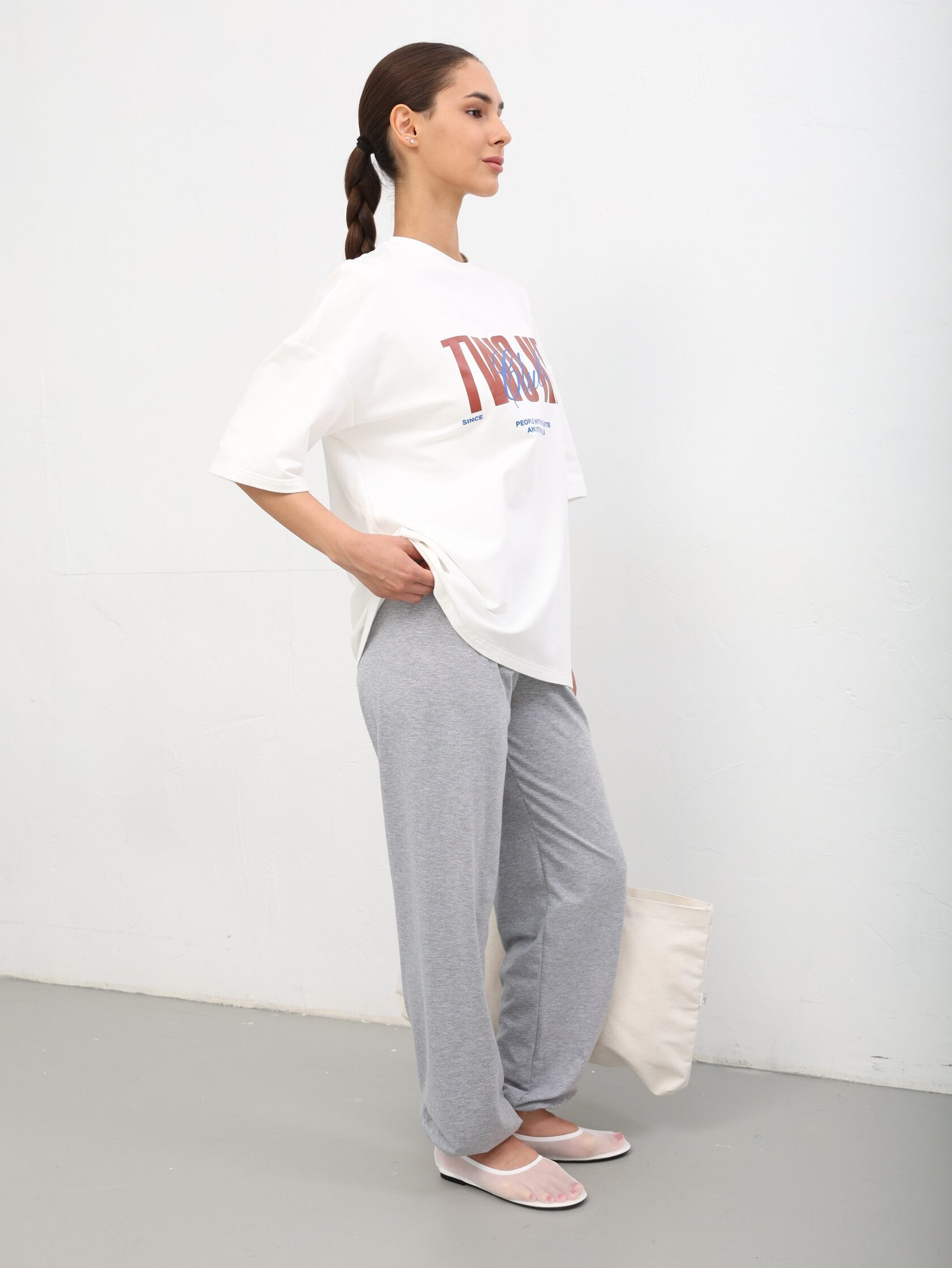 Без сомнения, перед Вами ХИТ нашего бренда: футболка оверсайз сшита из футера 2х нитки, спущенное плечо, отстрочки по плечевому шву и окату рукава, благодаря им швы выглядят всегда аккуратно! Горловина обработана узкой бейкой, за счет чего горловина выглядит красиво даже после многочисленных стирок. Низ рукавов и низ футболки подогнут и обработан двойной строчкой. Принт выполнен в технике шелкографии, что дает гарантии к многочисленным стиркам и носится долго.