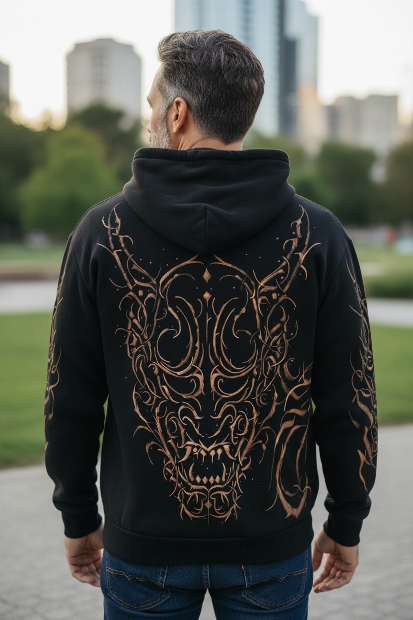 1. Эксклюзивный дизайн ручной работы: Мощное изображение Демона на спине худи создано вручную по авторской методике. Это не штампованный принт, а живой рисунок, каждый из которых обладает своим неповторимым характером и деталями.