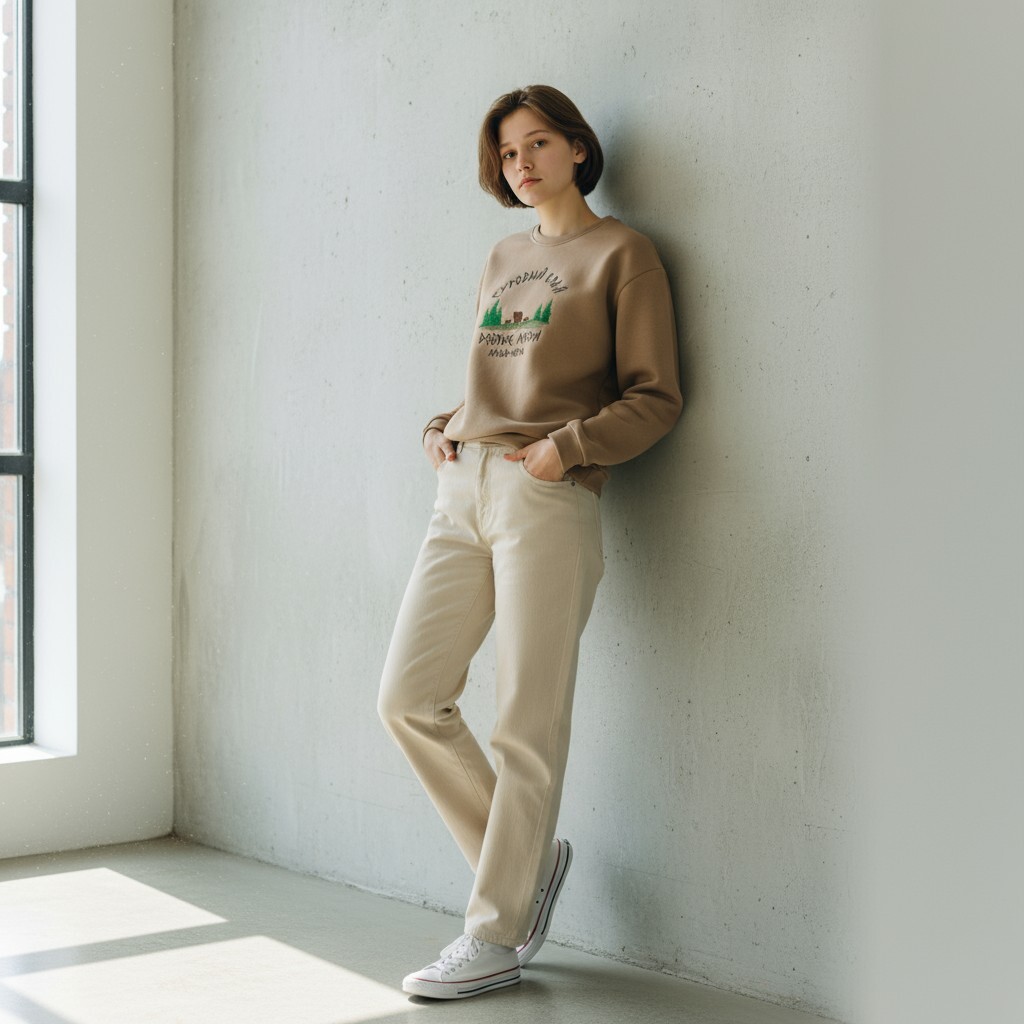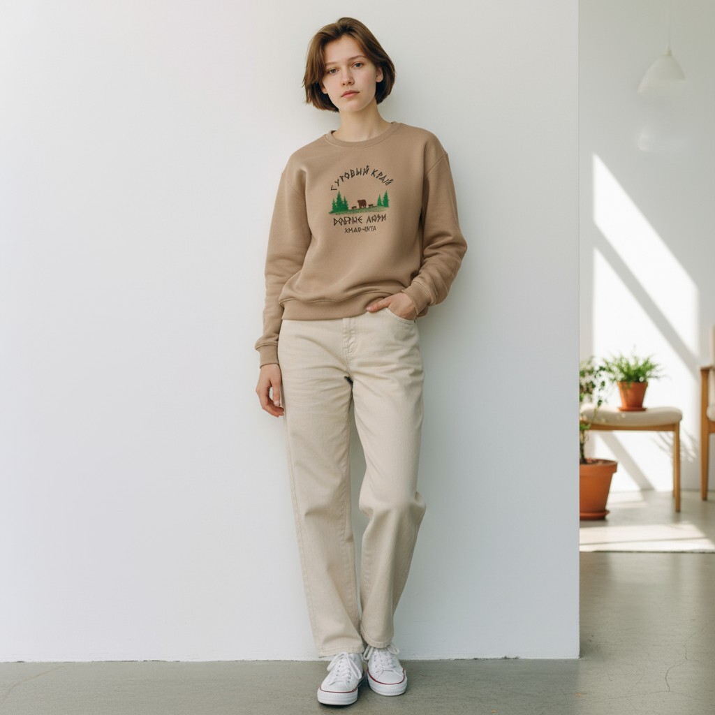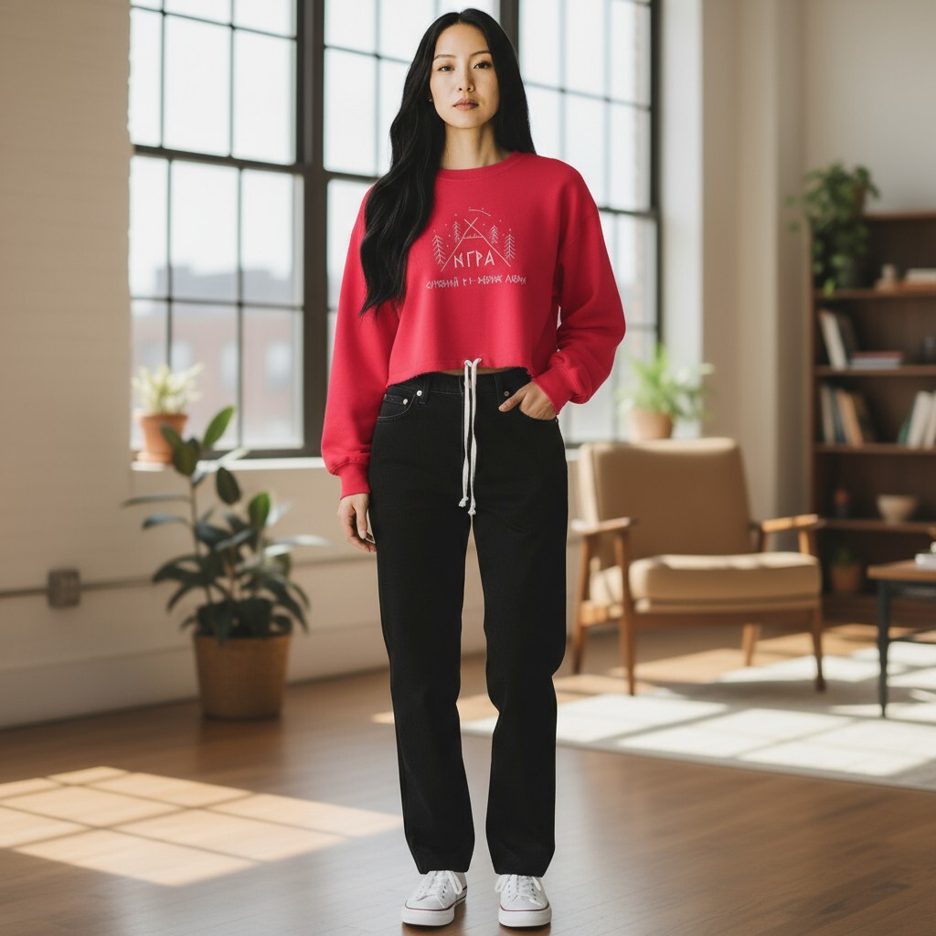 • Укороченный Силуэт (Cropped Fit): Этот крой находится на пике моды. Он идеально подчеркивает талию и прекрасно сочетается с брюками, джинсами или юбками с высокой посадкой, визуально удлиняя ноги.