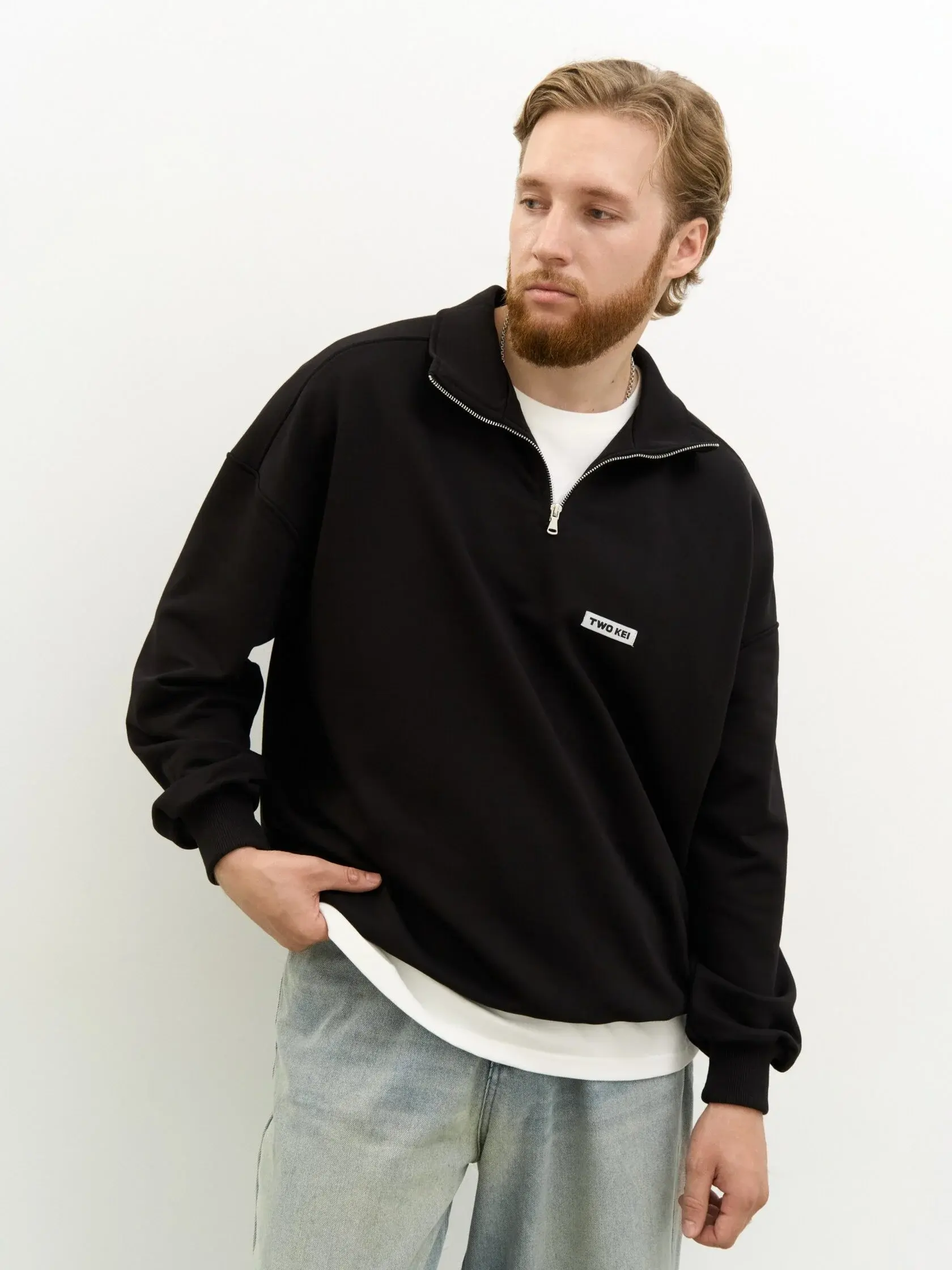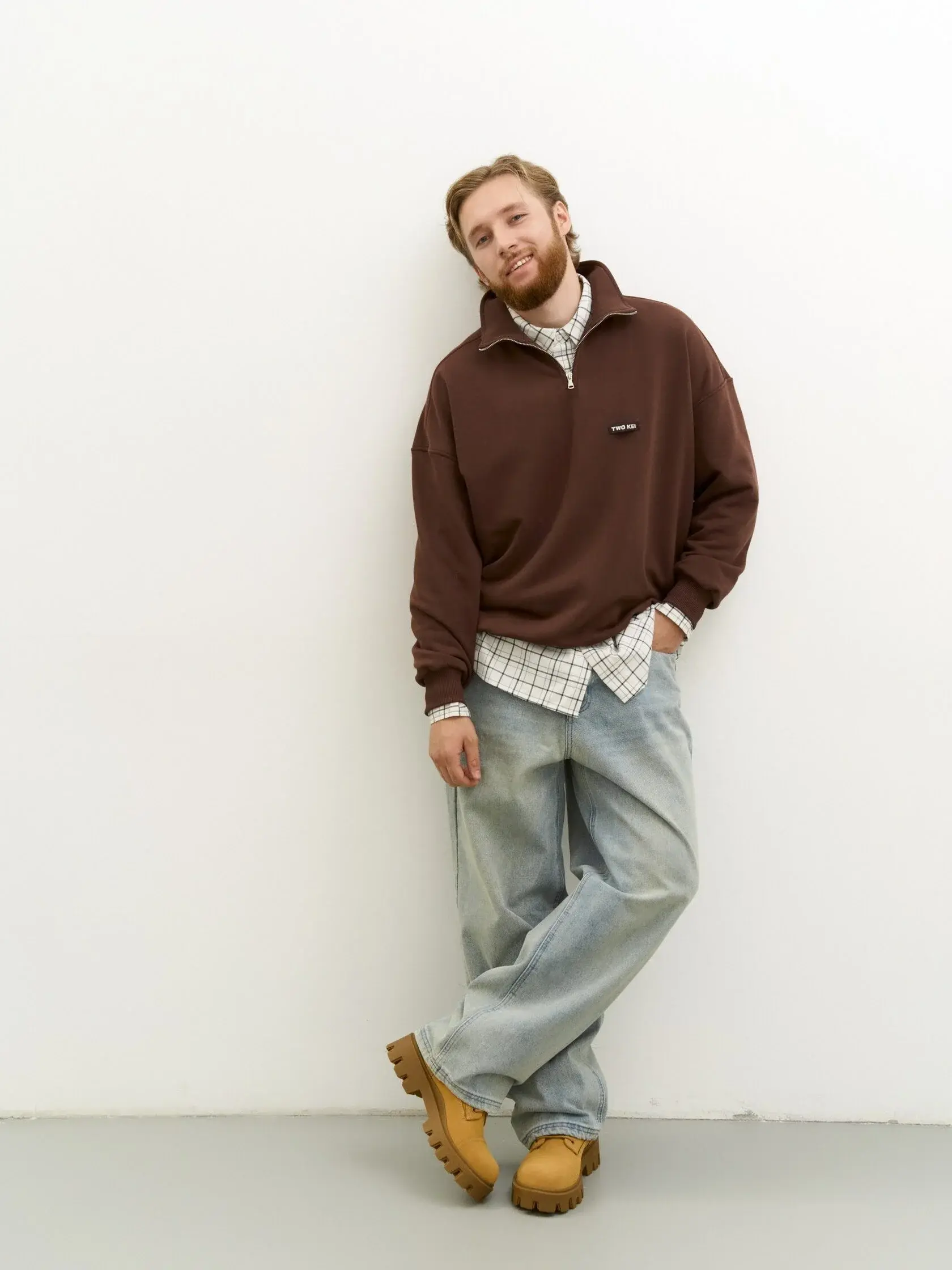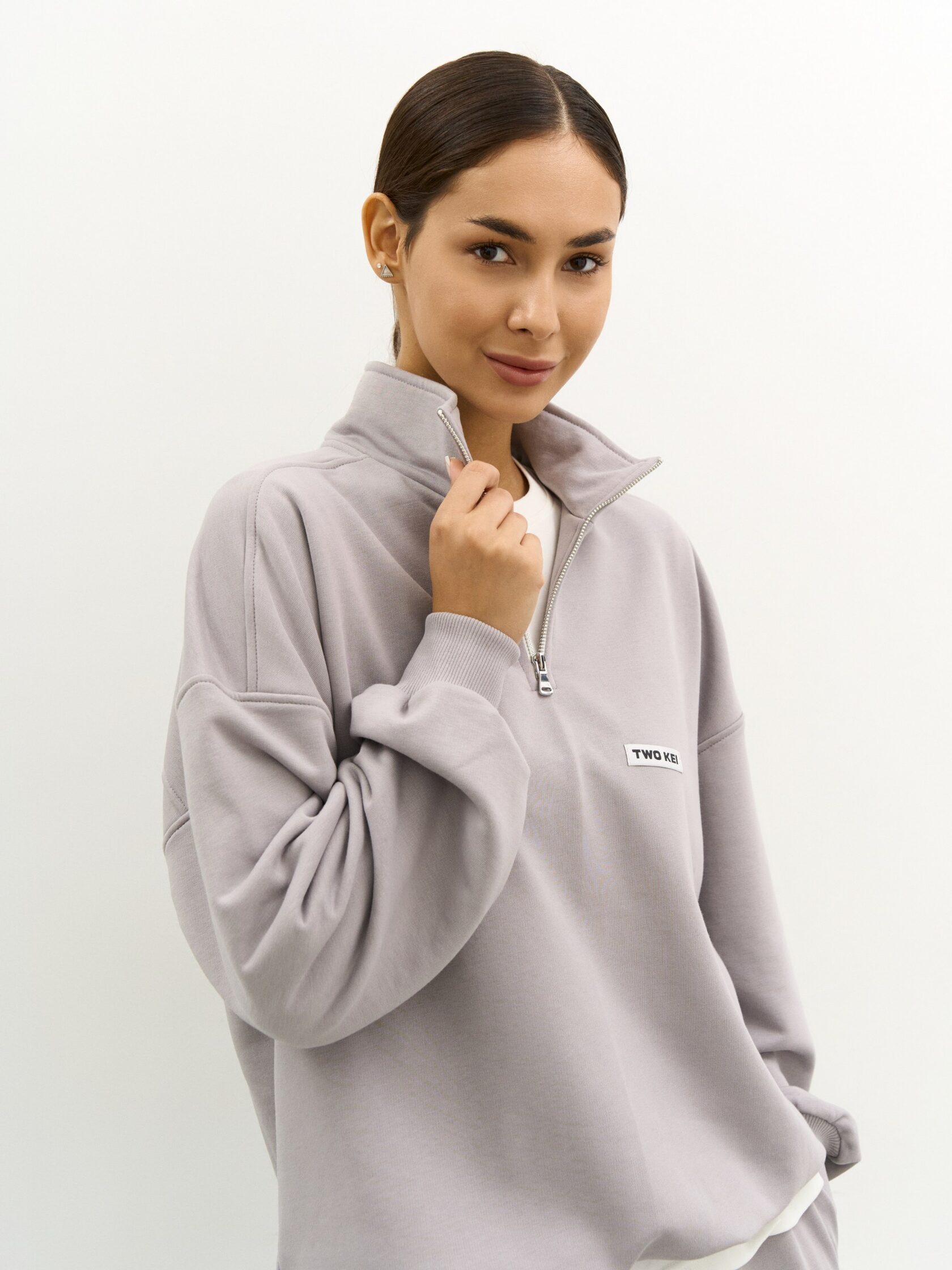 Свитшот свободного силуэта с воротником-стойкой на металлической молнии. Декорирован шевроном с вышивкой. Свитшот сшит из футера 3х нитки, ткань имеет среднюю плотность поэтому подходит для любого времени года, натуральный состав. Лекало свободное, спущенное плечо, на спинке есть кокетка. Манжет рукавов и низ свитшота обработаны резинкой кашкорсе.