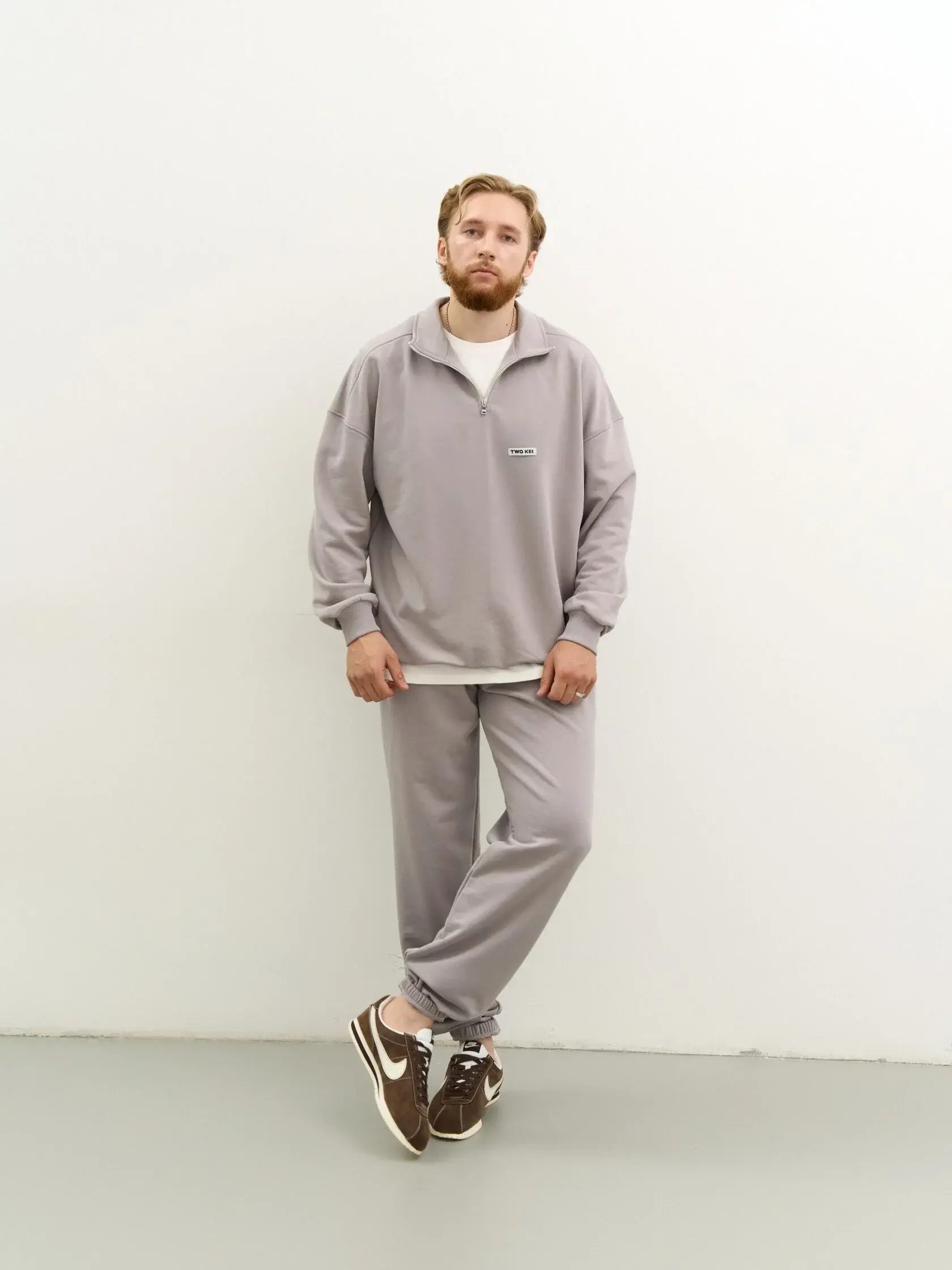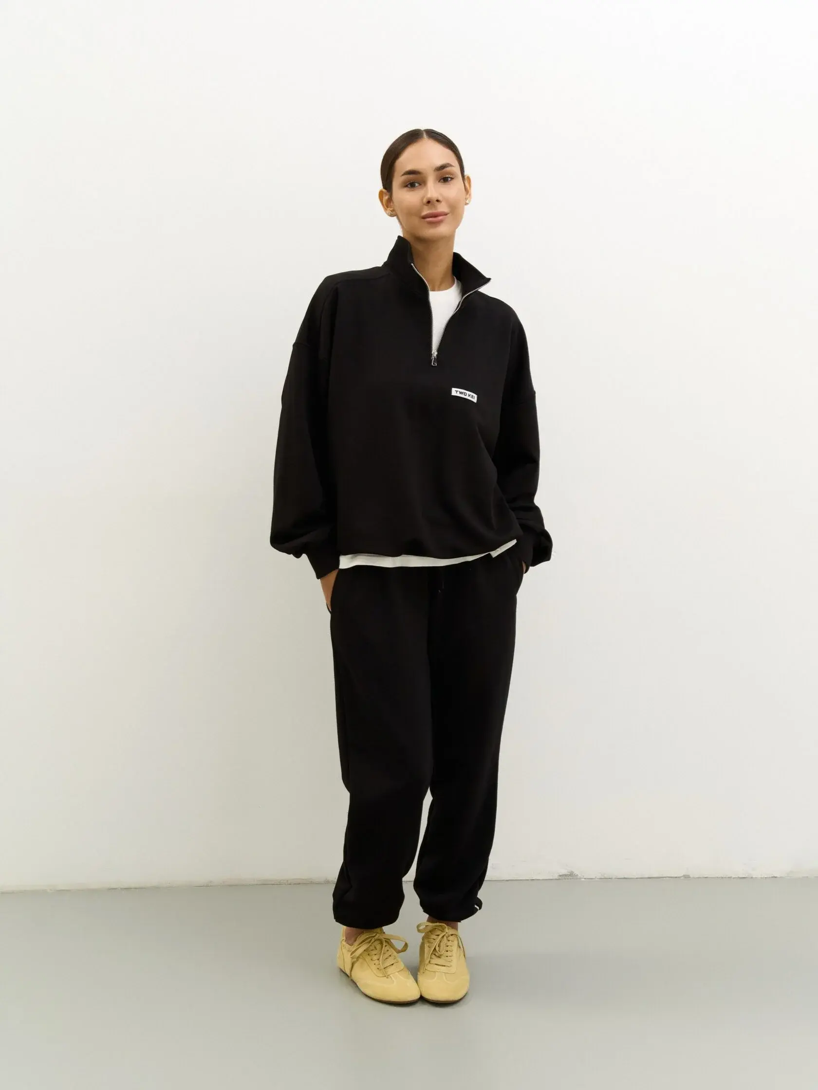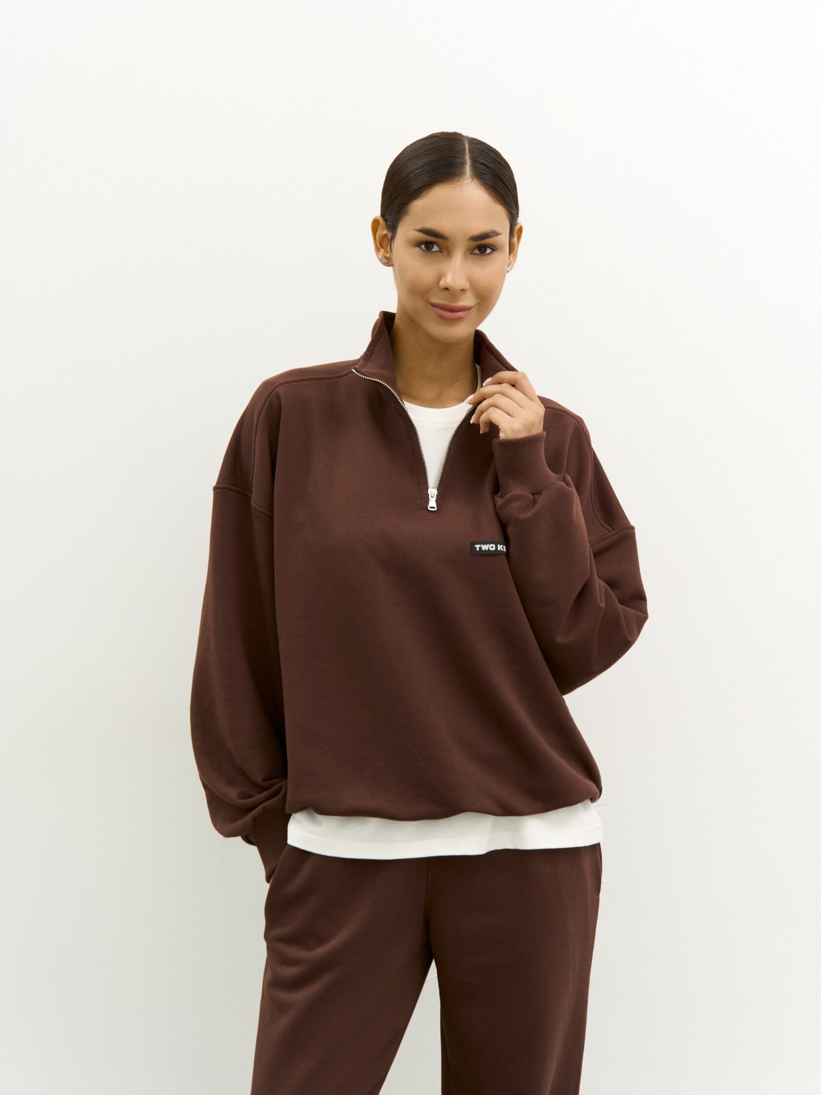 Свитшот свободного силуэта с воротником-стойкой на металлической молнии. Декорирован шевроном с вышивкой. Свитшот сшит из футера 3х нитки, ткань имеет среднюю плотность поэтому подходит для любого времени года, натуральный состав. Лекало свободное, спущенное плечо, на спинке есть кокетка. Манжет рукавов и низ свитшота обработаны резинкой кашкорсе.